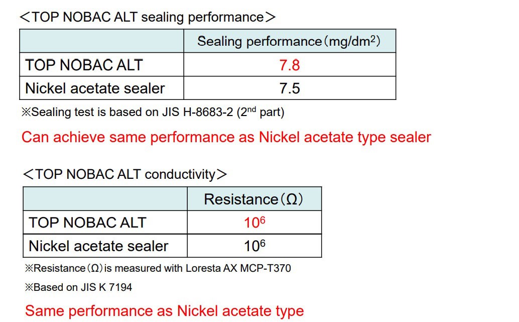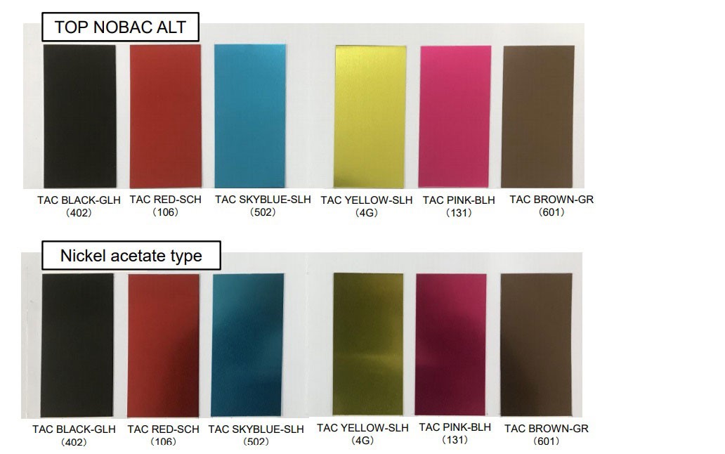 With antibacterial component inside “TOP NOBAC ALT” that cover all the parts on sealing layer, it could be effect against bacteria cells and suppress their growth, apart from giving superior dye fixing performance and high corrosion resistance to the anodized parts.